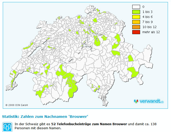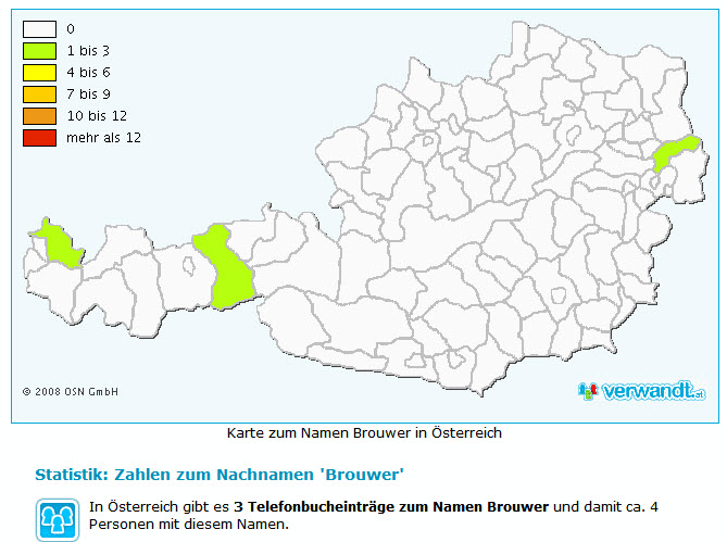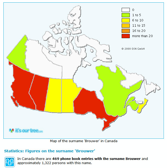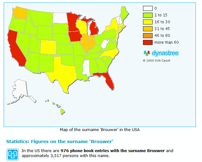 In de volgende landen is de familienaam Brouwer geregistreerd: