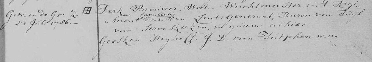In 1786 is het regiment in Zutphen en trouwt Derk met Geesken Heijhoff.